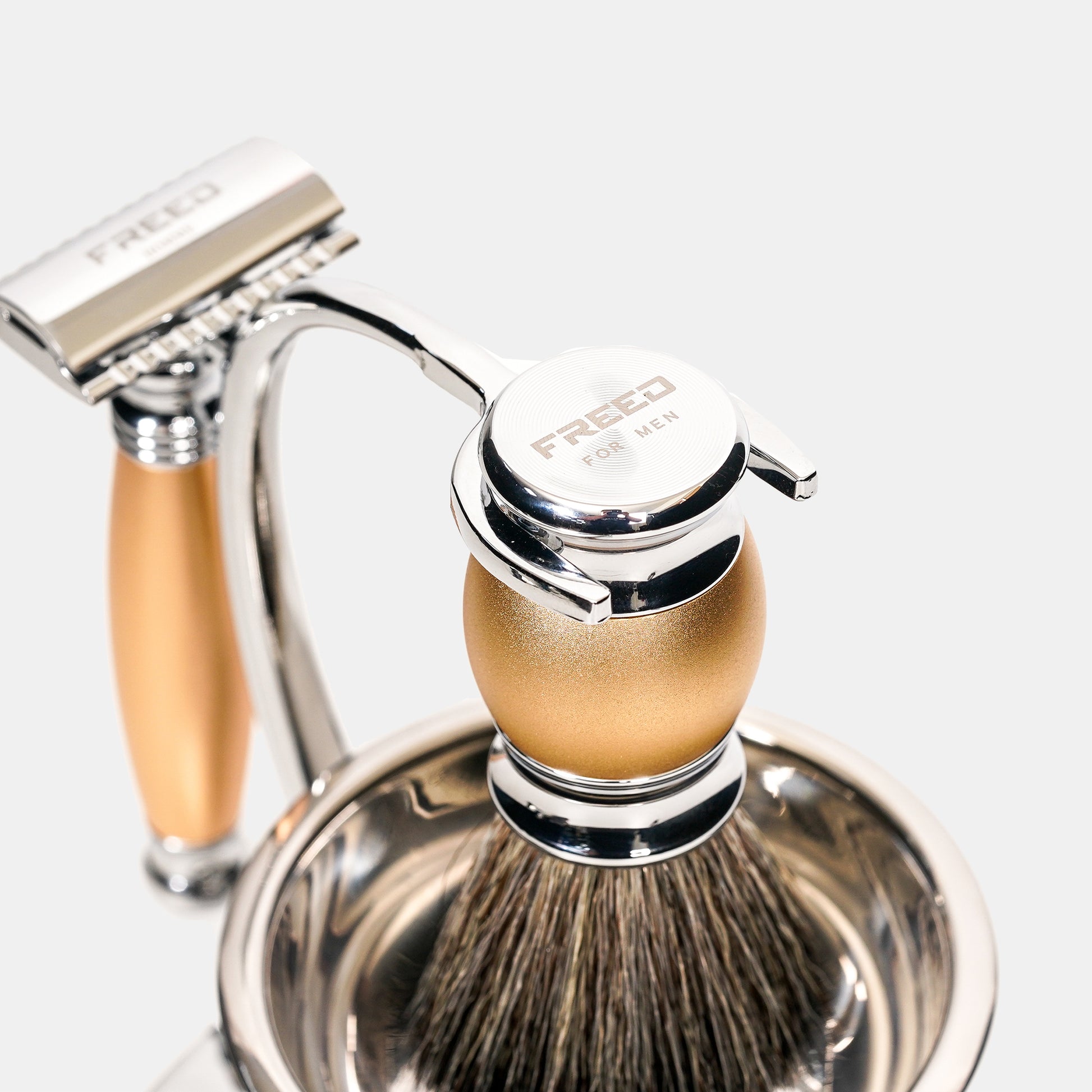 採用豪華車品牌鍍鉻工藝與鋁合金材質,完美呈現男人品味的刀具,刀片採用歐洲鋼材製作而成,堅韌且鋒利的刀片使得刮鬍非常的輕鬆俐落,搭配安全裝置完美服貼肌膚角度讓刮鬍過程大幅降低受傷與鬍子拉扯的機率,全金屬材質刀身,完美的重量配比,手感操控性極佳,讓男人專屬的儀式感為您開啟每一天。