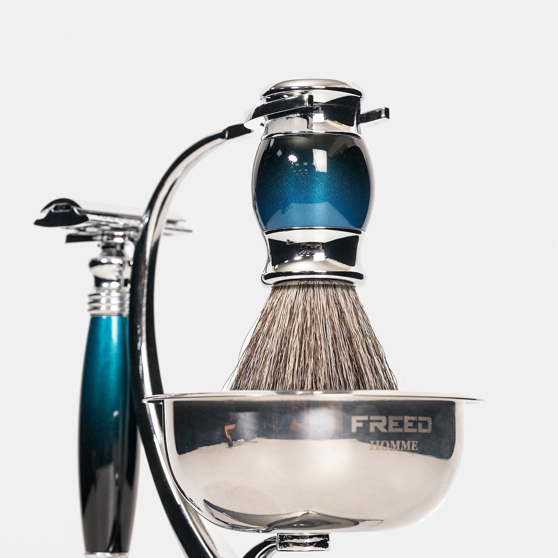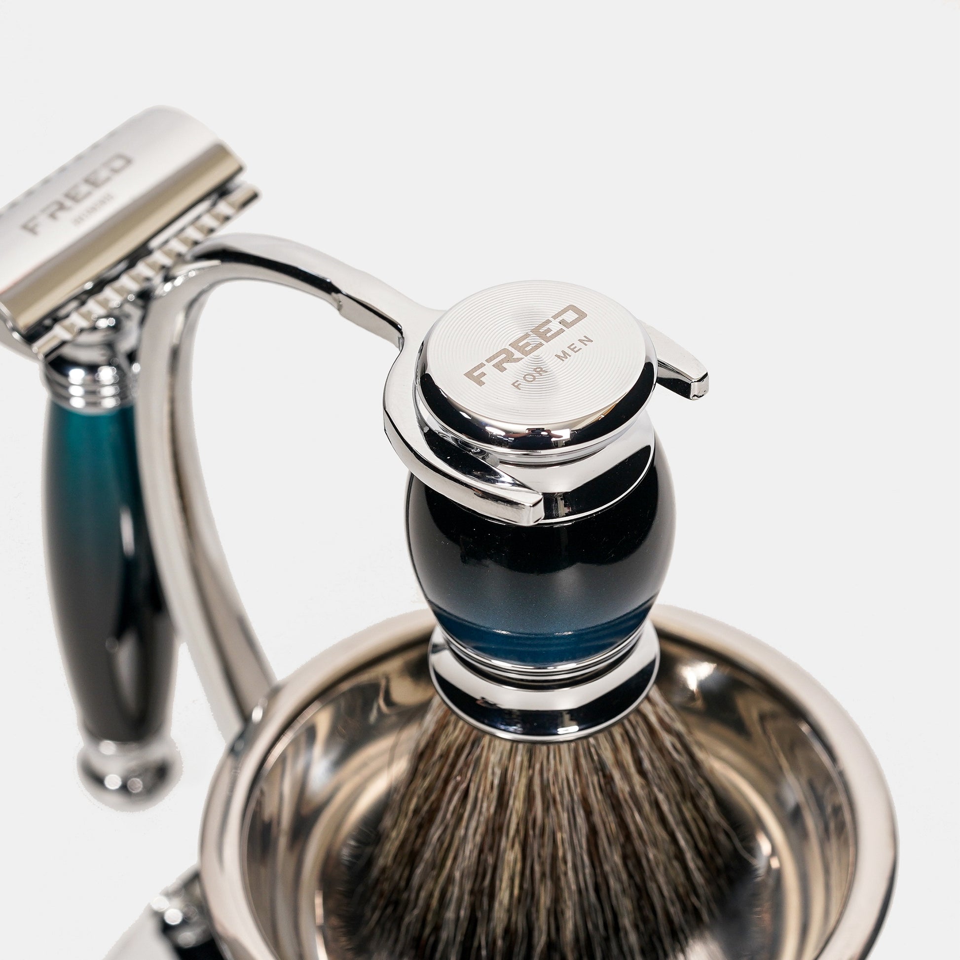 採用豪華車品牌鍍鉻工藝與鋁合金材質,完美呈現男人品味的刀具,刀片採用歐洲鋼材製作而成,堅韌且鋒利的刀片使得刮鬍非常的輕鬆俐落,搭配安全裝置完美服貼肌膚角度讓刮鬍過程大幅降低受傷與鬍子拉扯的機率,全金屬材質刀身,完美的重量配比,手感操控性極佳,讓男人專屬的儀式感為您開啟每一天。