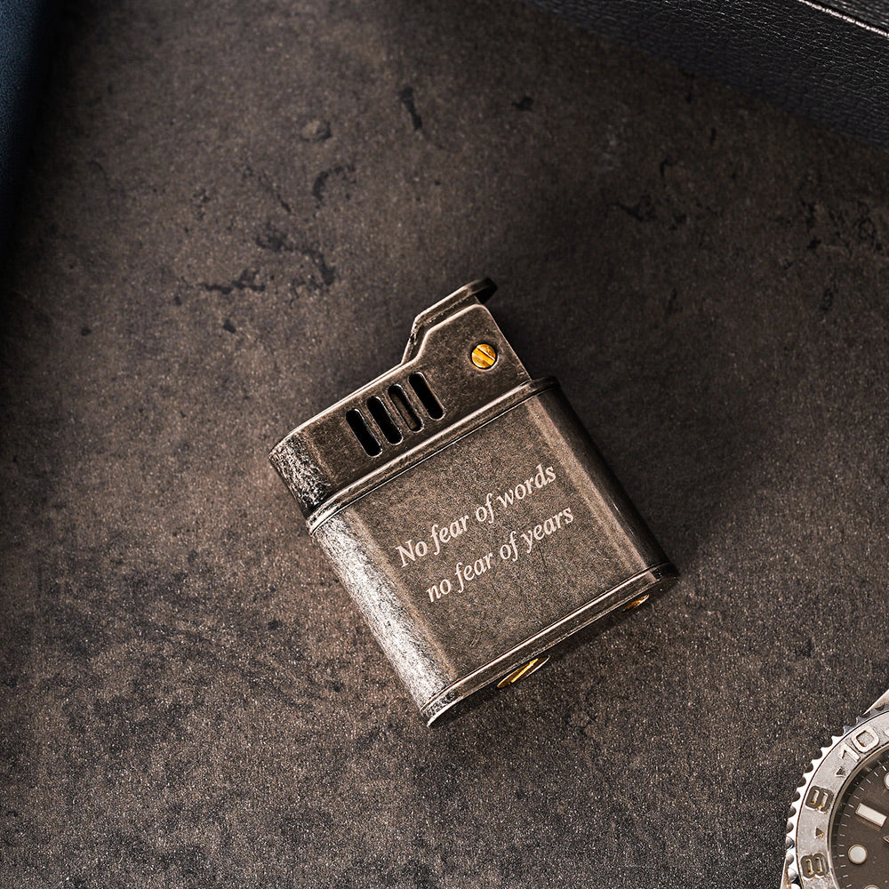 每個細節都經過精心雕琢,易於操作只需一個輕輕的轉動砂輪,即可瞬間點燃火源,透過煤油能提供源源不斷的火源,同樣也具備可客製化刻字的服務,較特別的是不限制行數,可大範圍雕刻文字,是一款不管自用或者送禮都非常合適的禮品
